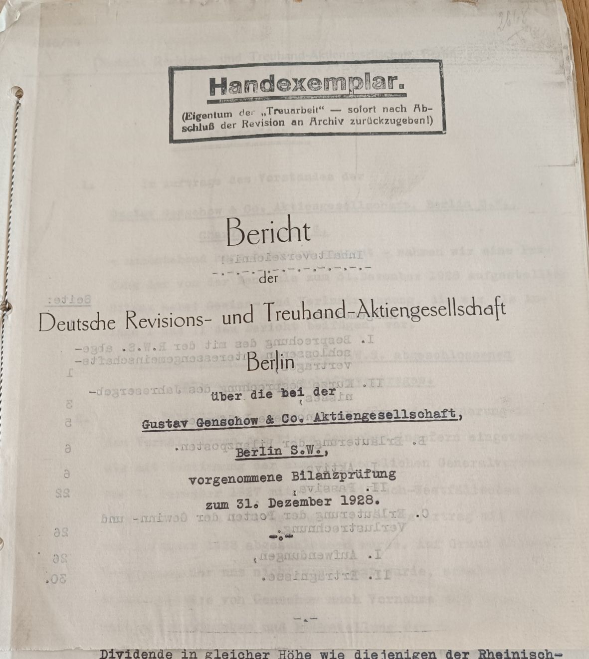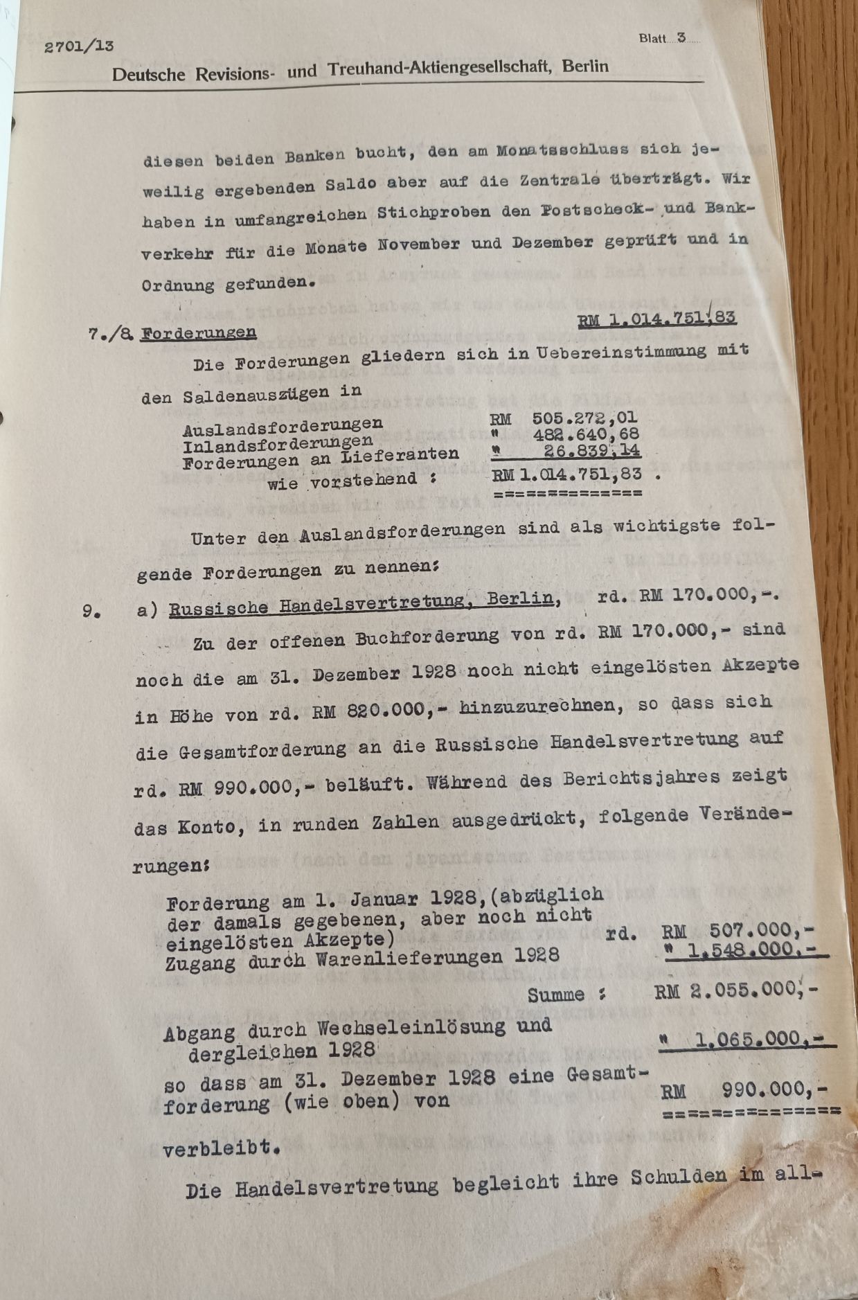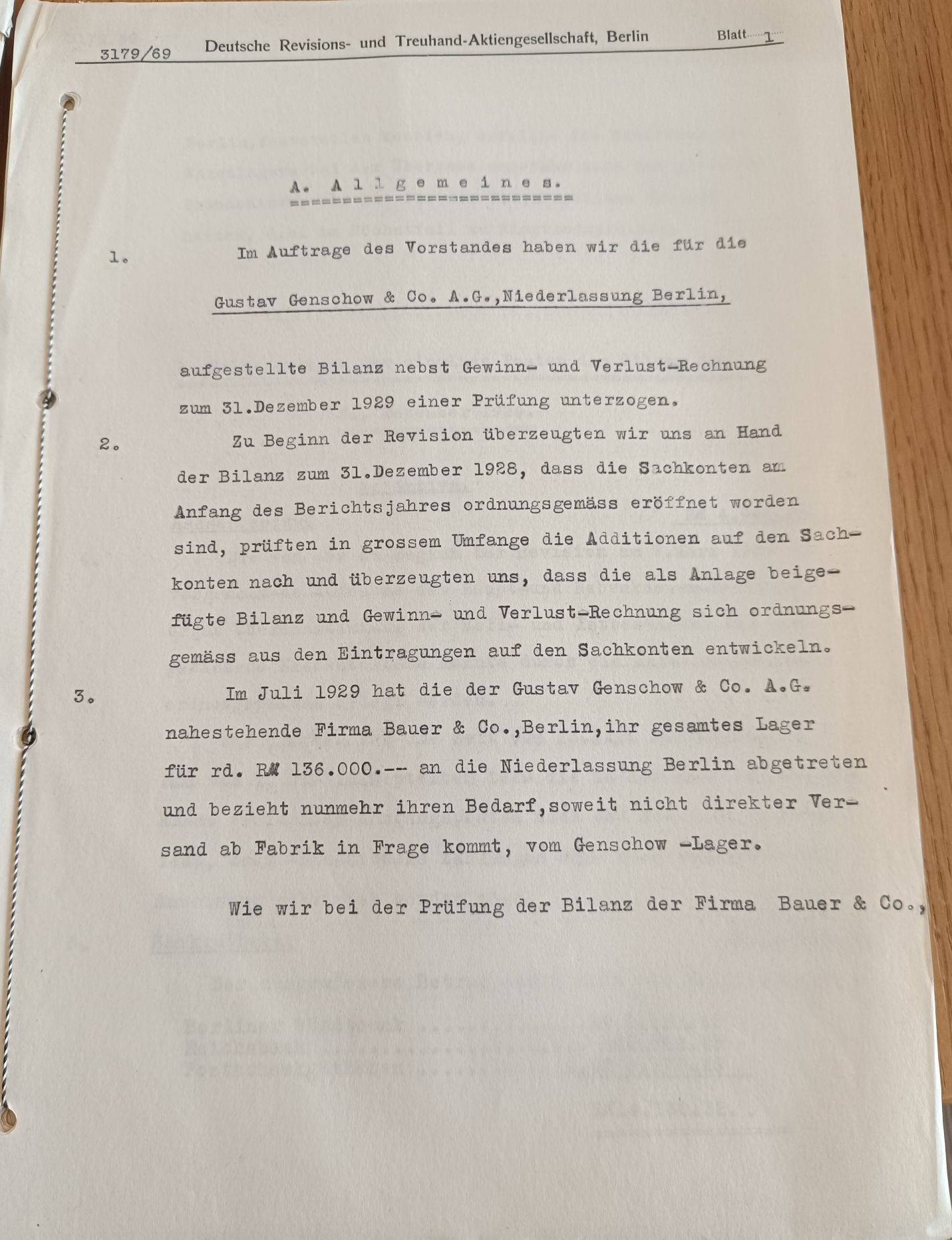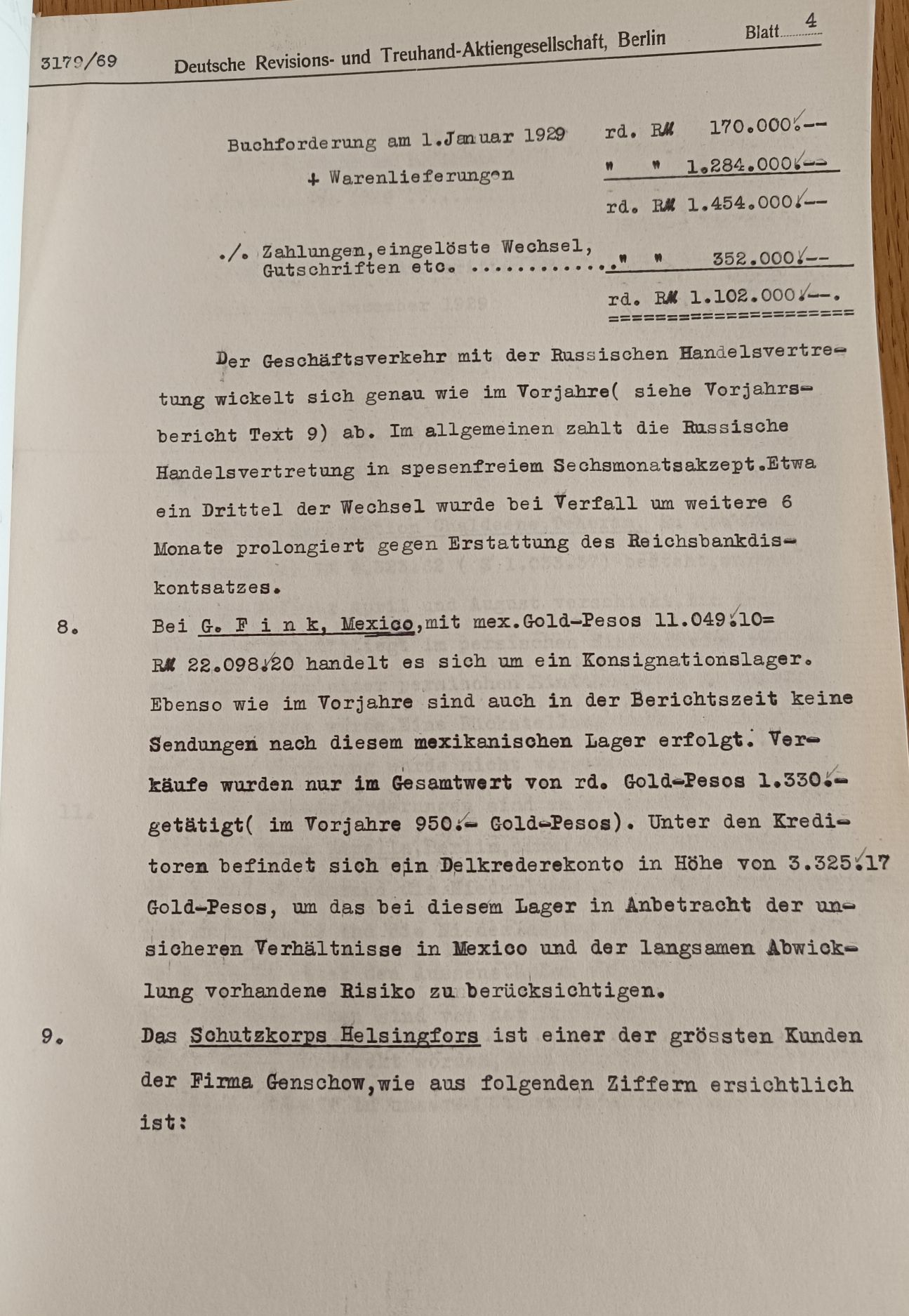 В отчете о проверке бухгалтерского баланса берлинского филиала фирмы Геншов на 31.12.1929 читаем (BArch R 8135/5324, без пагинации, стр. 3-4, 7-8 отчета):