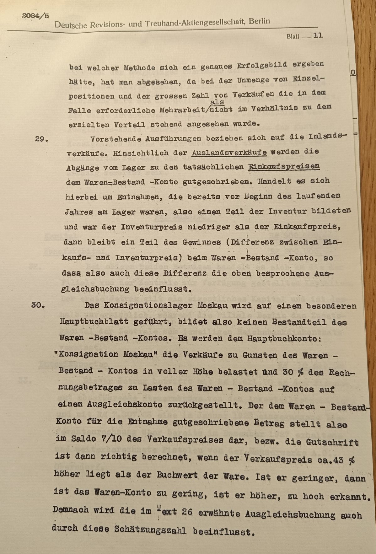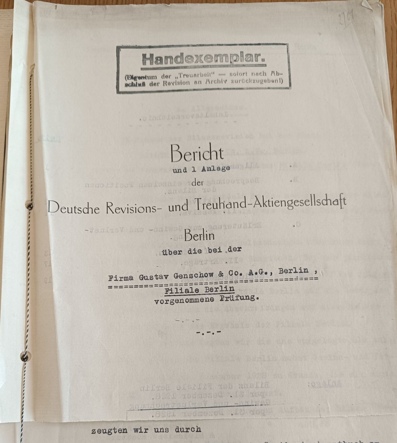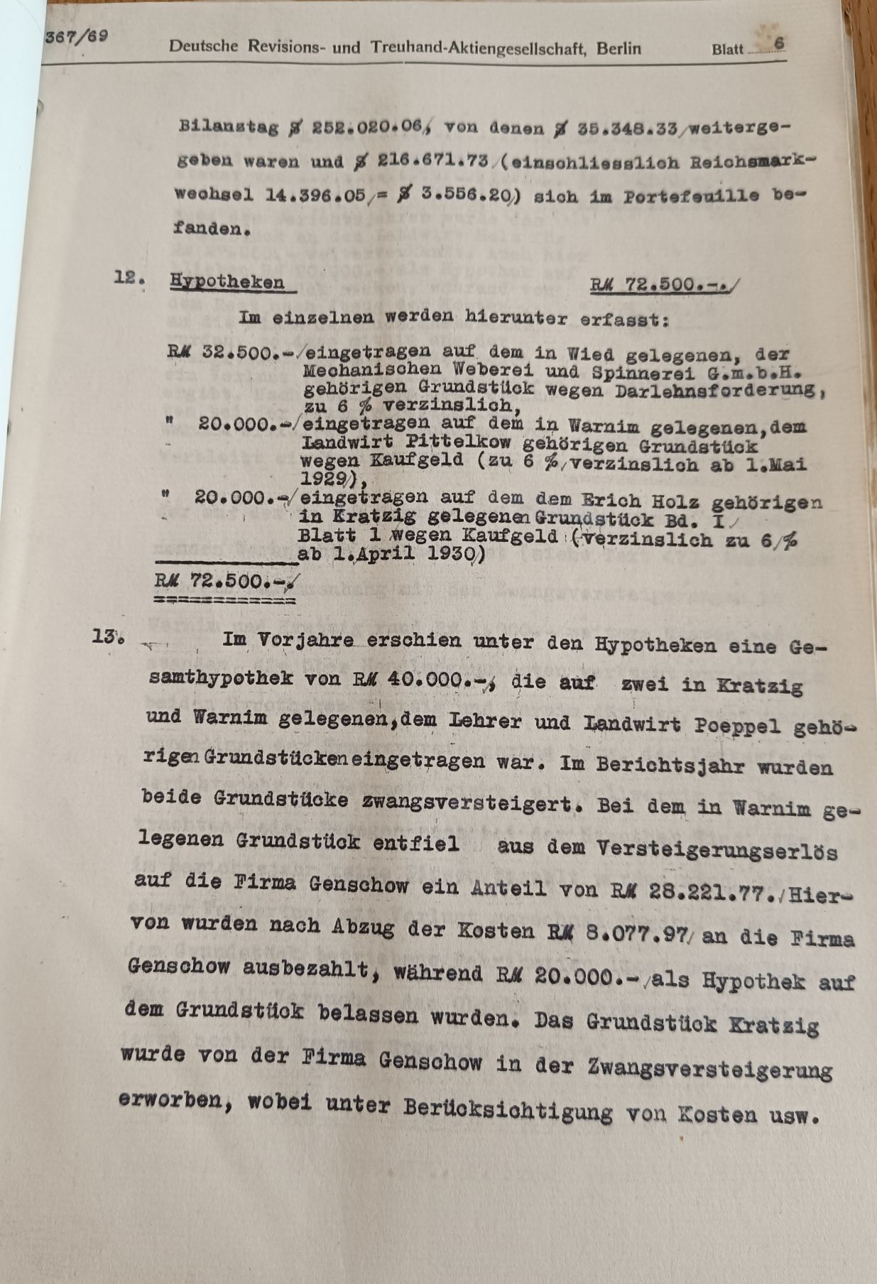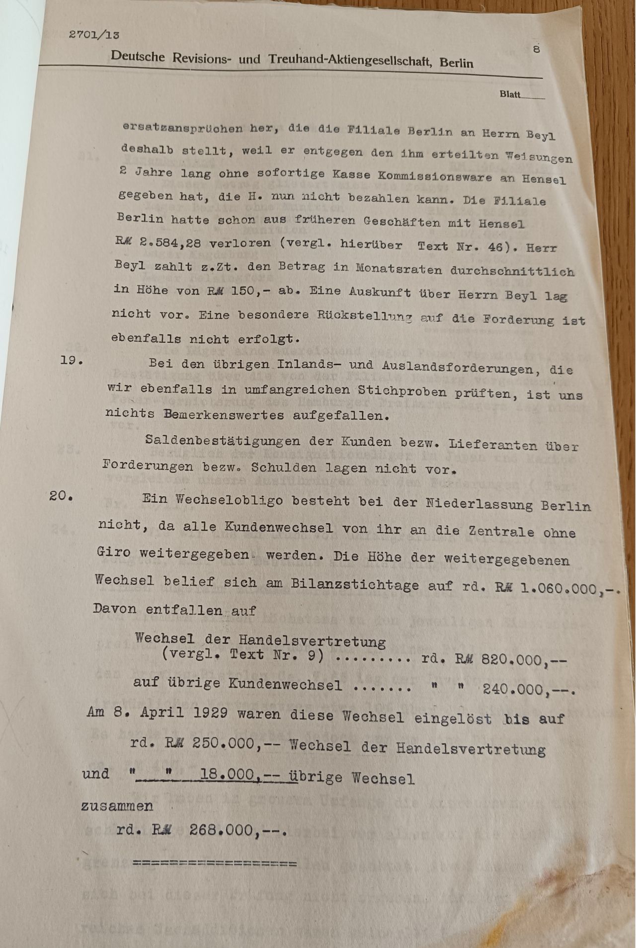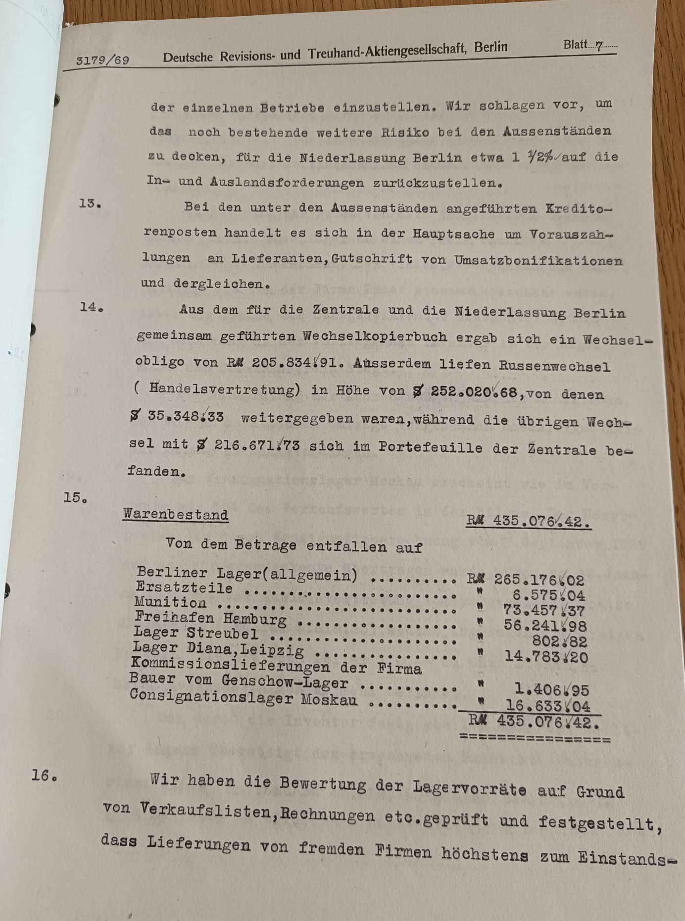 В отчете о проверке бухгалтерского баланса берлинского филиала фирмы Геншов на 31.12.1929 читаем (BArch R 8135/5324, без пагинации, стр. 3-4, 7-8 отчета):