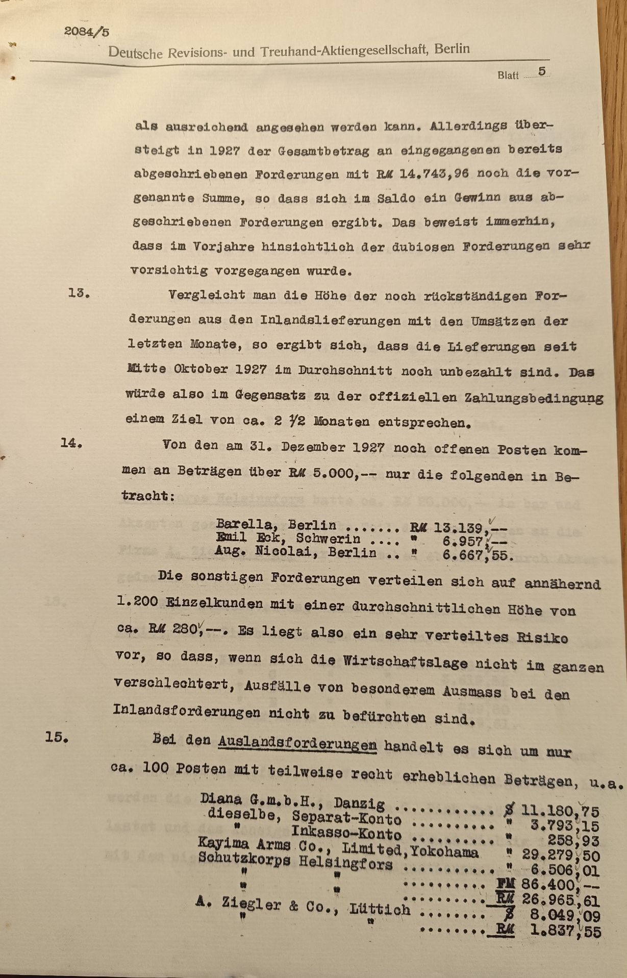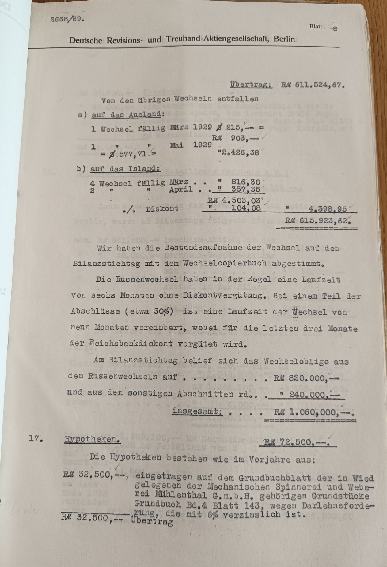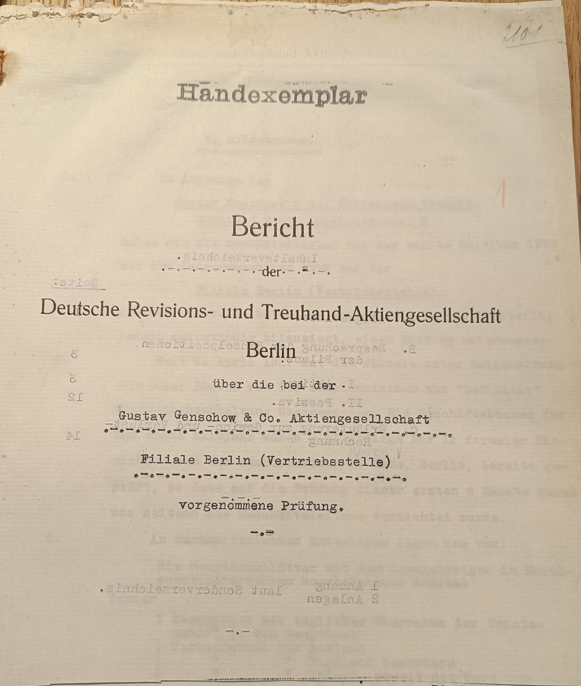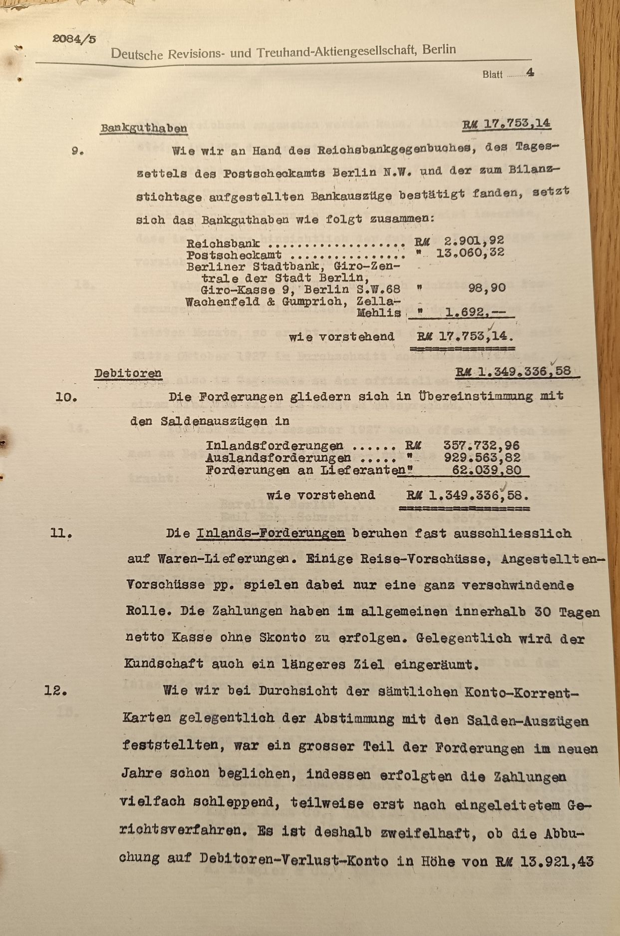 В отчете о проверке бухгалтерского баланса берлинского филиала фирмы Геншов на 31.12.1929 читаем (BArch R 8135/5324, без пагинации, стр. 3-4, 7-8 отчета):