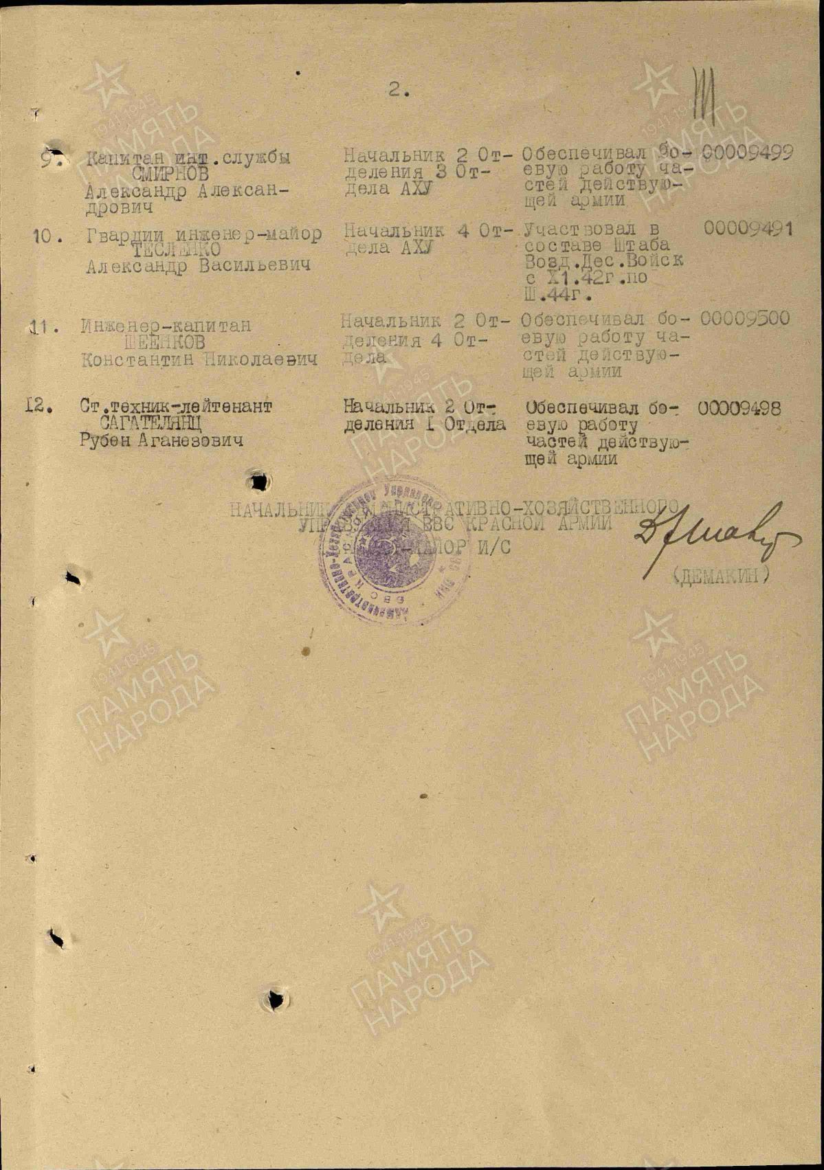 Подтвердил это и известный исследователь органов ГБ Н. Петров, соавтор справочника Органы ВЧК-ОГПУ-НКВД-НКГБ-МГБ-МВД-КГБ, 1917-1991, который выписывал в этом архиве информацию о полковниках ГБ (и званиях выше). Тем же приказом, согласно его информации, были произведены в полковники ГБ Марченко Сергей Павлович, Молокососов Яков Алексеевич, Чернецкий Борис Николаевич и Чернявский-Ольшанецкий Иосиф Ионович.