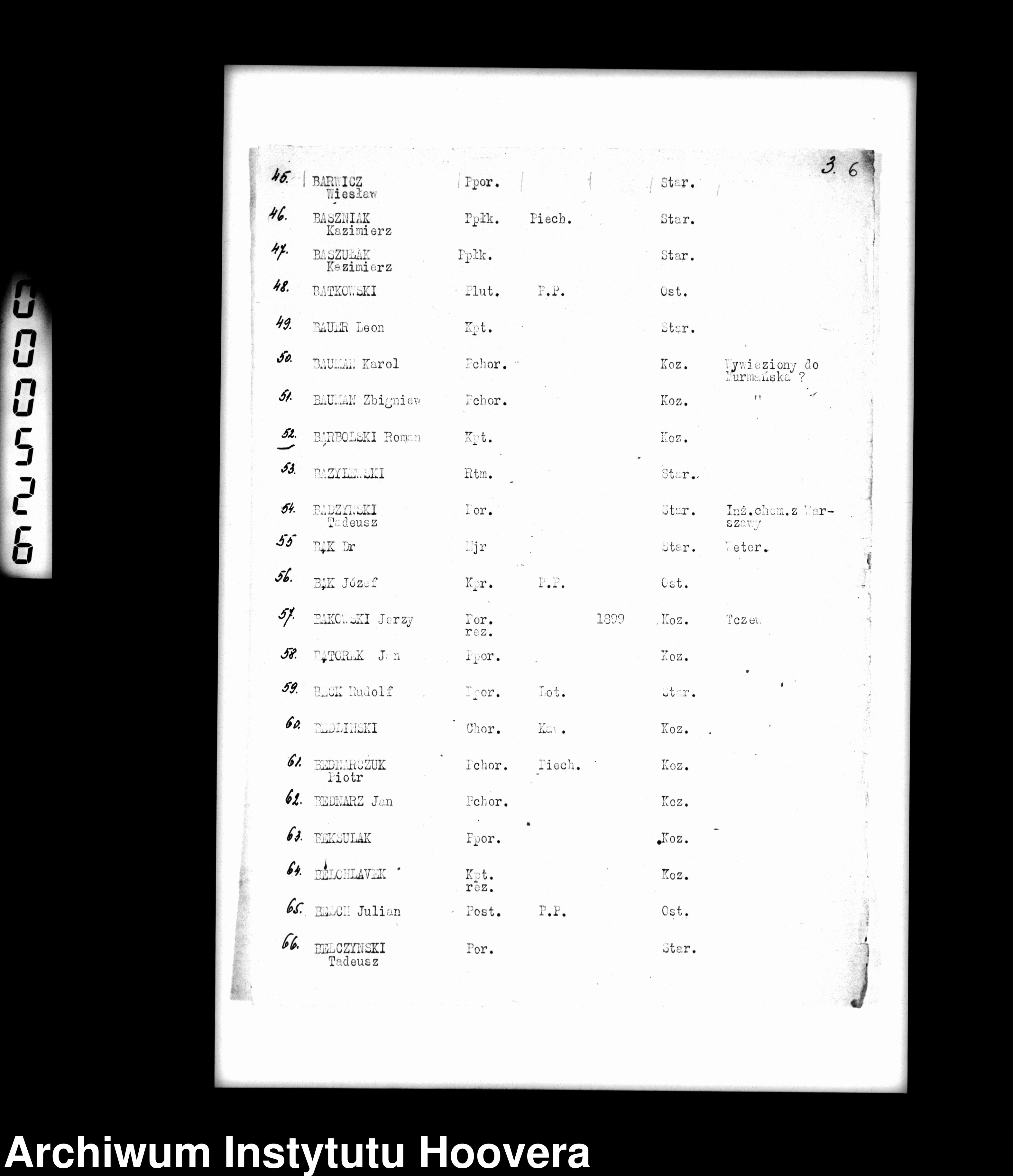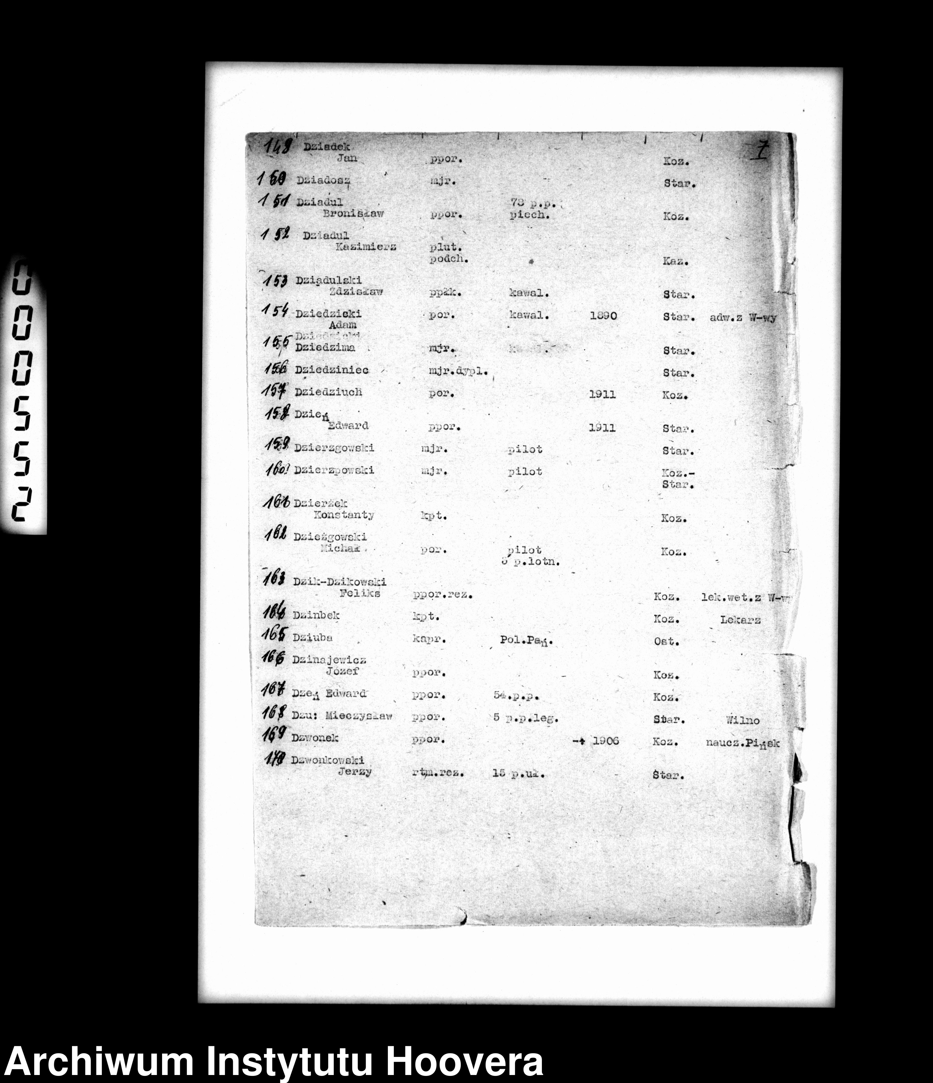 Так, например: майор авиации ДЗЕРГОВСКИ обнаружен по картотеке военнопленных Старобельского лагеря под фамилией ДЕЖКОВСКИЙ; причем ни имени, ни отчества, ни возраста ДЗЕРГОВСКОГО поляки в своем списке не указали.
