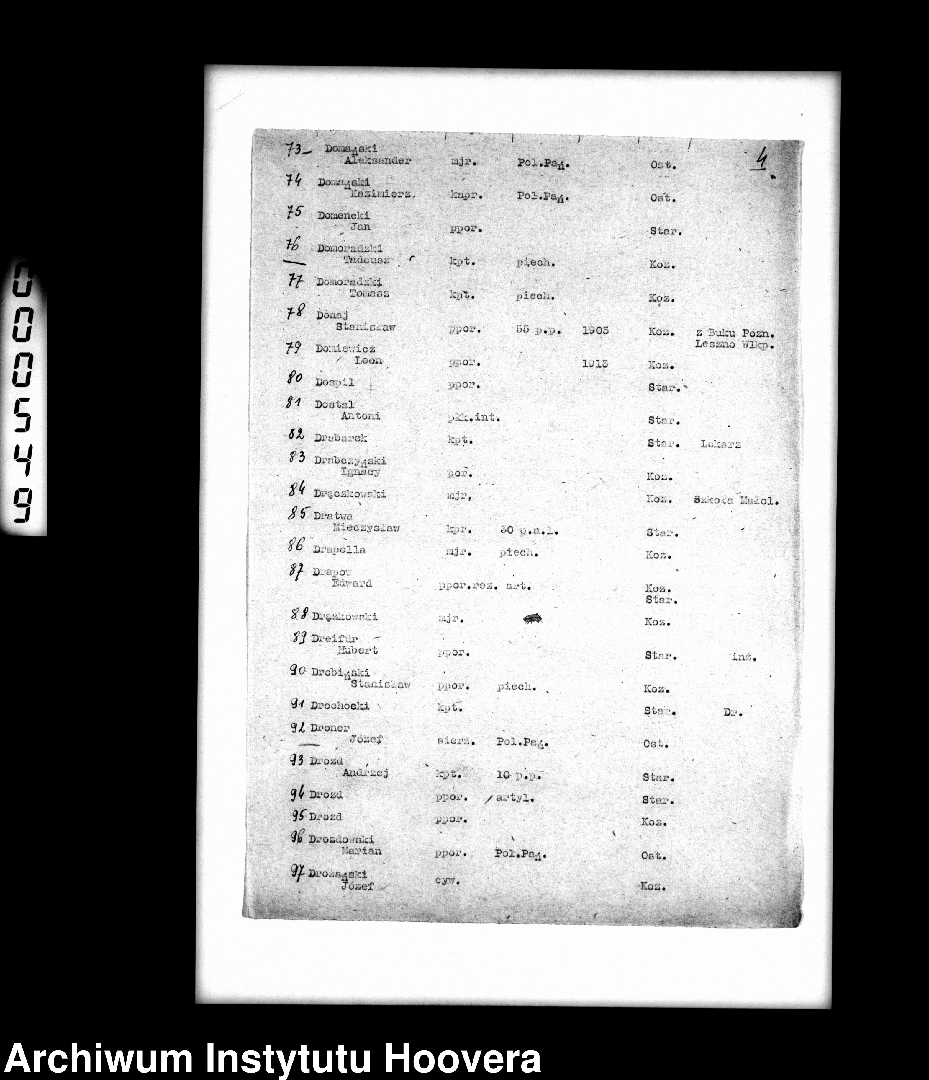 Сержант полиции ДРОНЕР Юзеф содержался в Осташковском лагере под фамилией ДРОБКА;