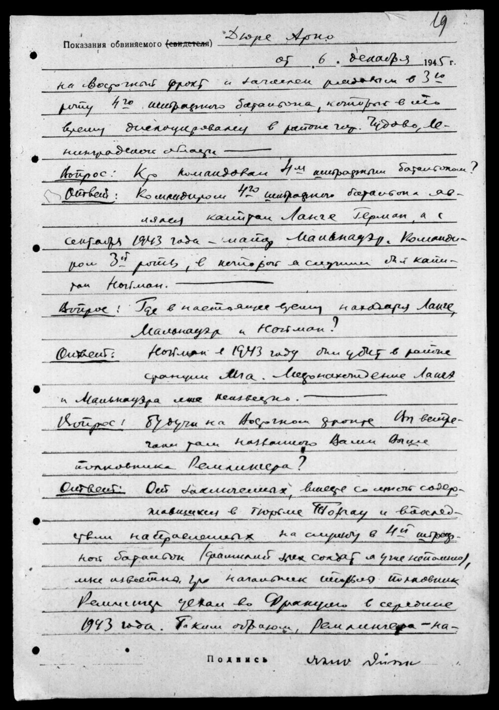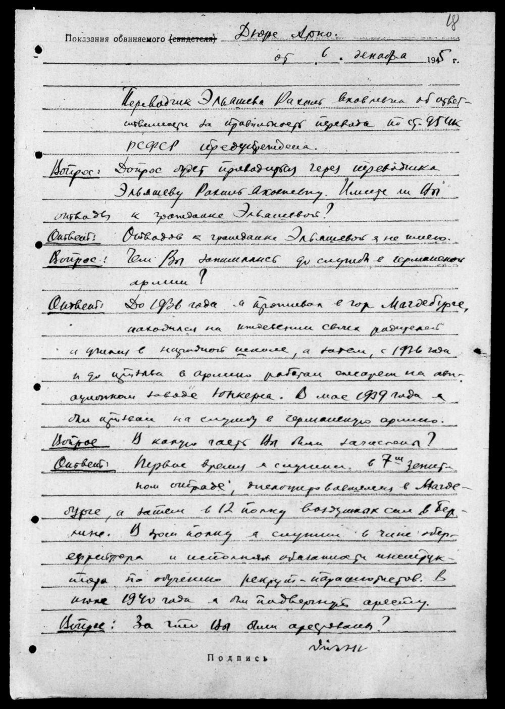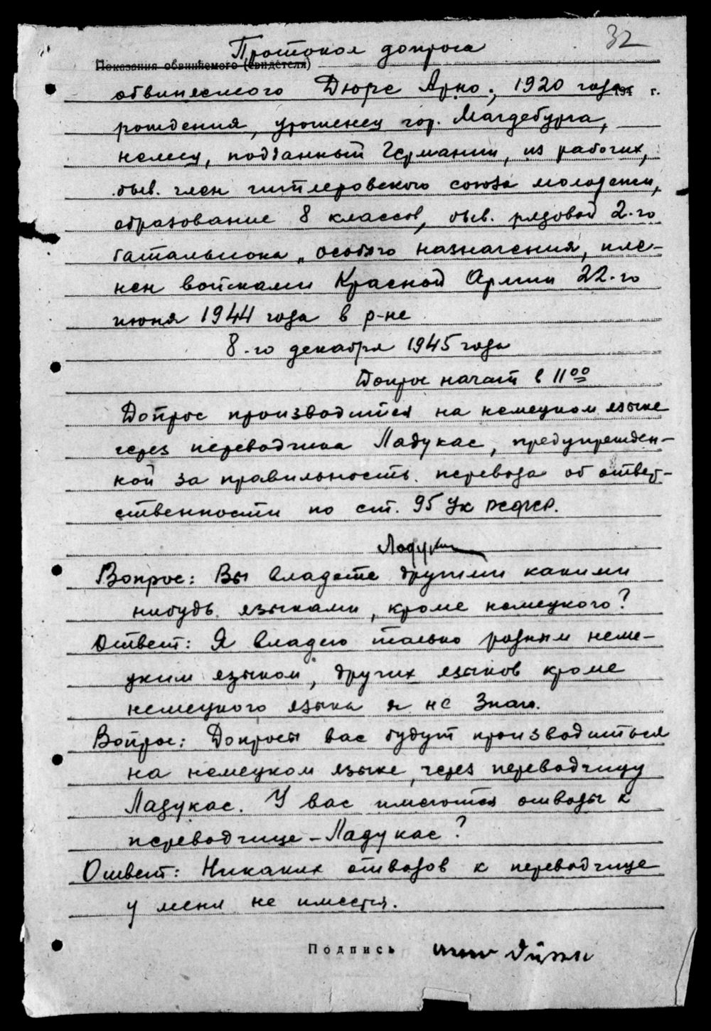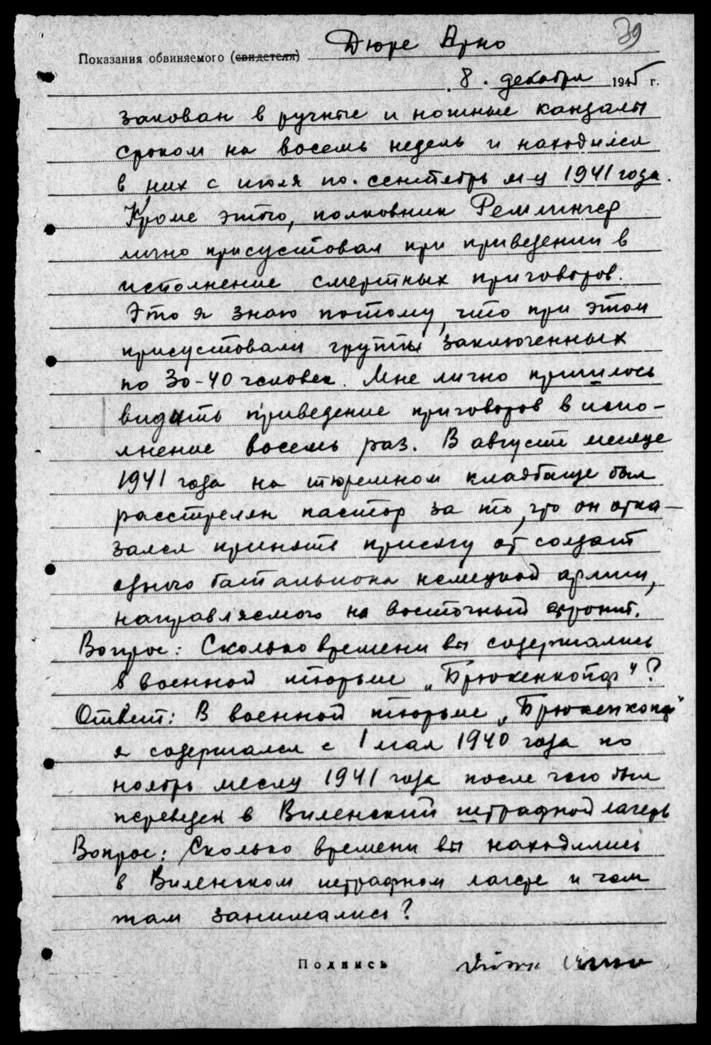 Действительно, вот что он говорил 06.12.1945 (ЦА ФСБ, дело Н-20830, т. 10; экземпляр дела есть и в архиве ГВП под номером 36056-45, включая материалы надзорного производства):