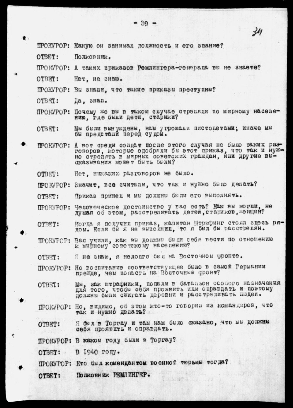 ПРОКУРОР: Значит, вскоре после того, как немцы совершили вероломное нападение на Советский Союз?