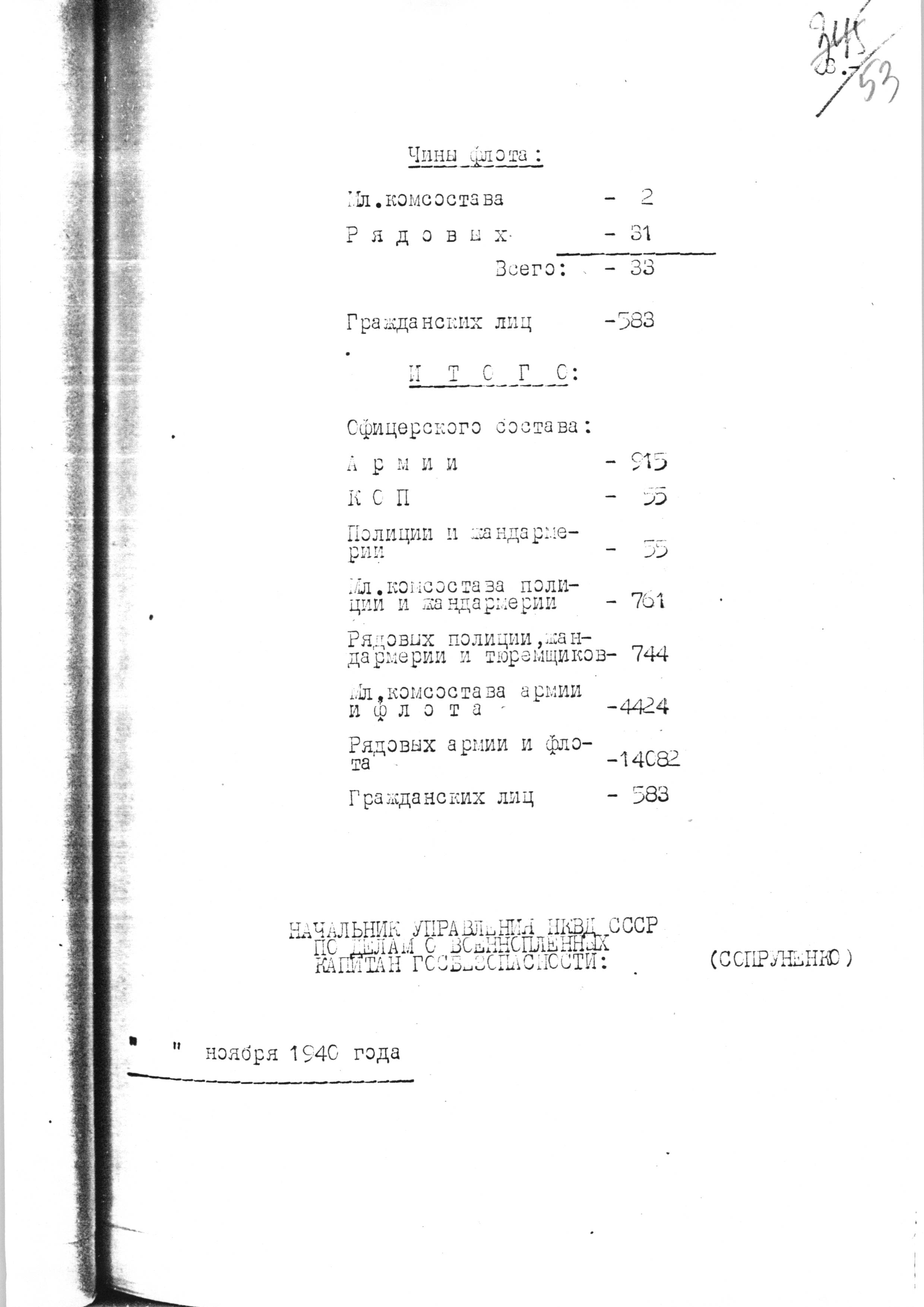 Из 3.825 человек по представленному поляками списку по учетам НКВД СССР найдено 3.417 человек, не найдено 408 человек.