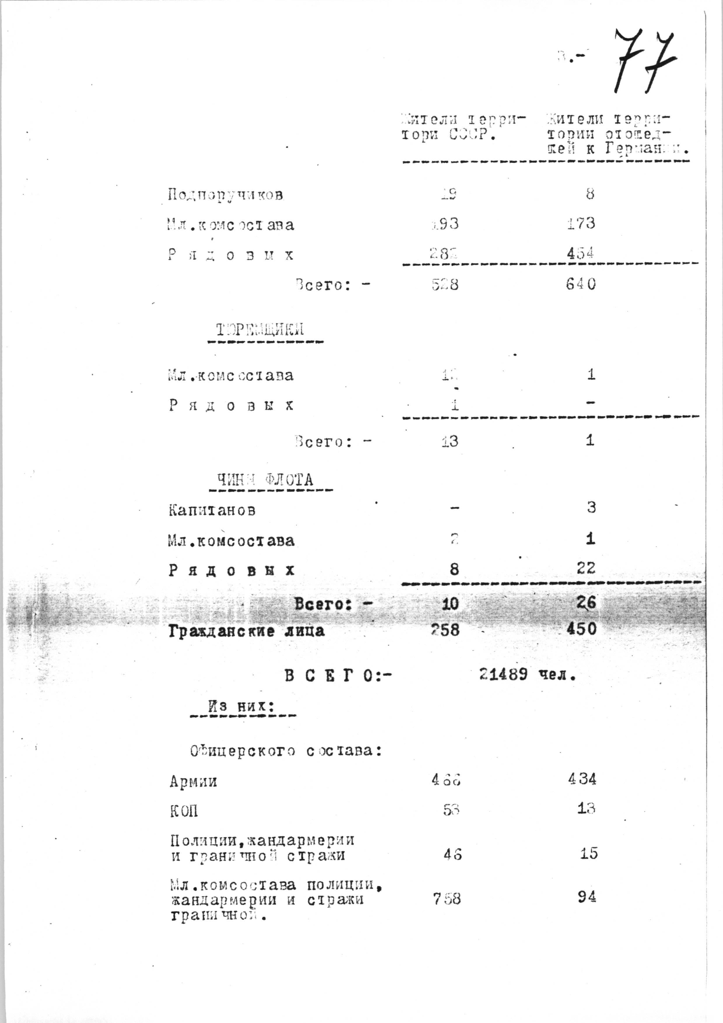 "Из 27.455 чел. военнопленных и интернированных военнослужащих быв. польской армии, содержащихся в лагерях НКВД, поляков 21.019 чел, т. е. 78 %."