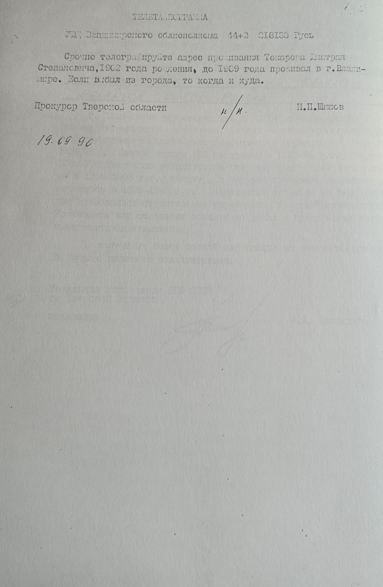 Через некоторое время начальник местного УНКВД отчитывался заместителю наркома внутренних дел Меркулову совершенно секретной шифрограммой об "исполнении" некоего действия[17]: